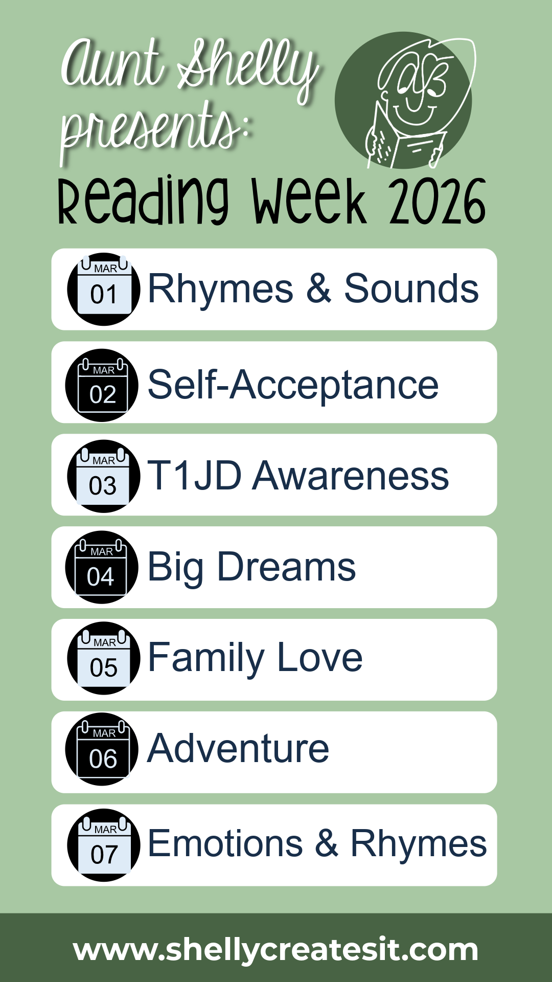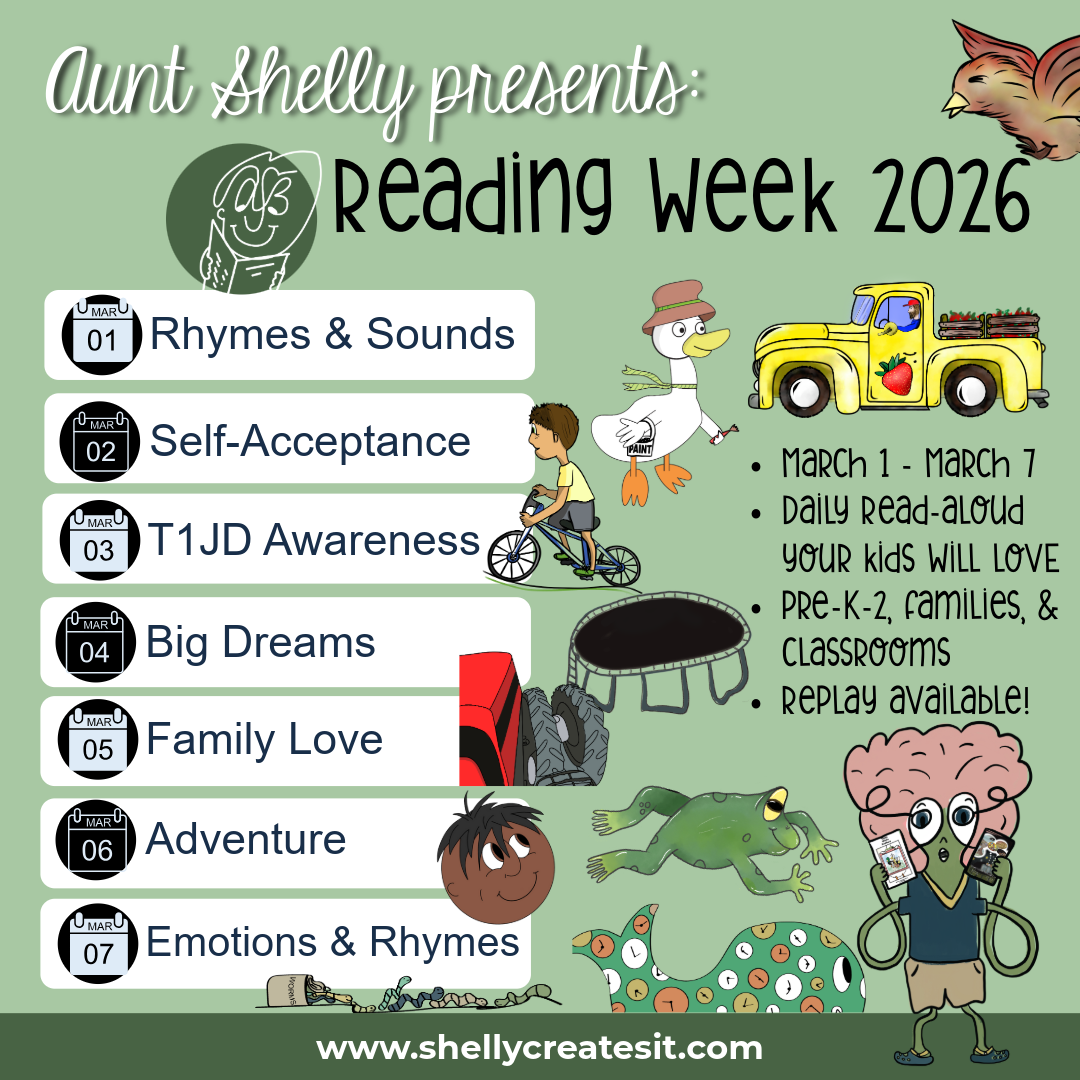 Join Shelly for Reading Week 2026, a joyful, week-long virtual read-aloud event celebrating stories, sounds, emotions, and big ideas—perfect for families, classrooms, and young readers!